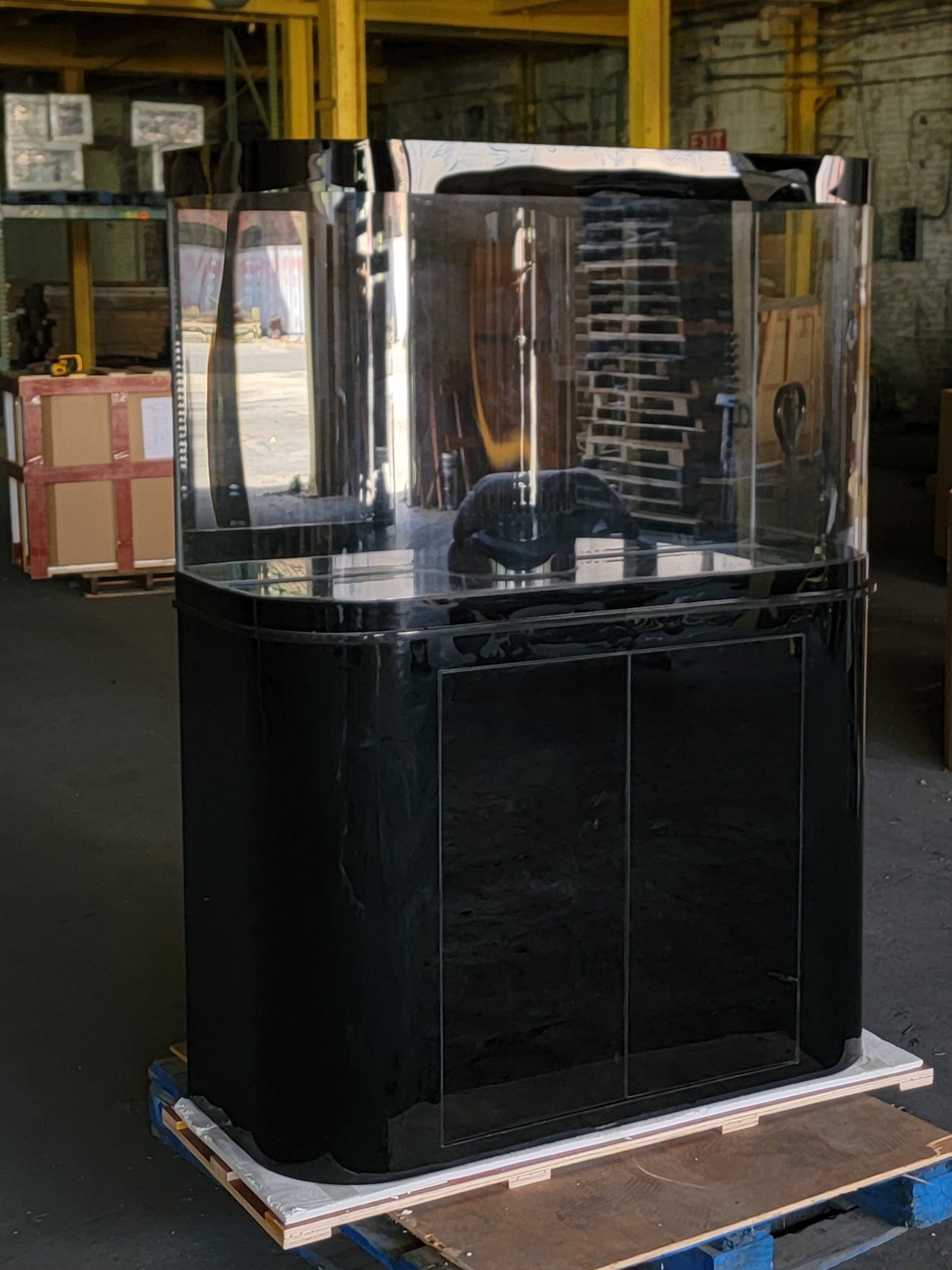 120g Curved Panoramic Flat Bowfront Glass Reef-Ready Aquarium in Gloss Black Stand