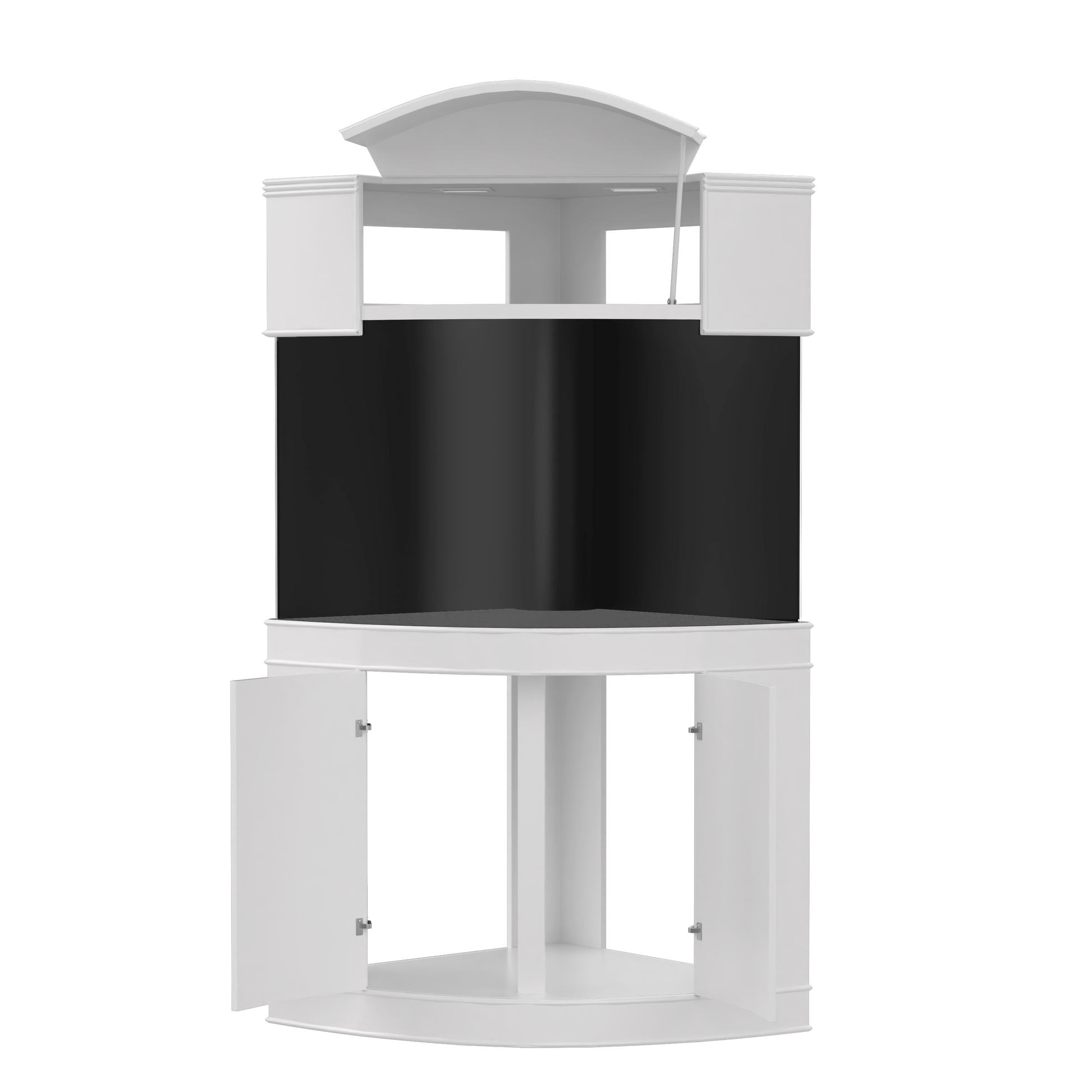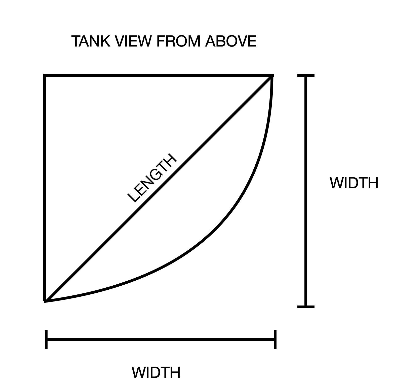 This is an Aqua Vim top of the line 440 gallon corner bow style fish tank aquarium set. Dimensions on both sides facing the wall is 60" with a tank height of 36", total height including the stand is 81". The stand on its own is 34" tall with a 15" front open canopy