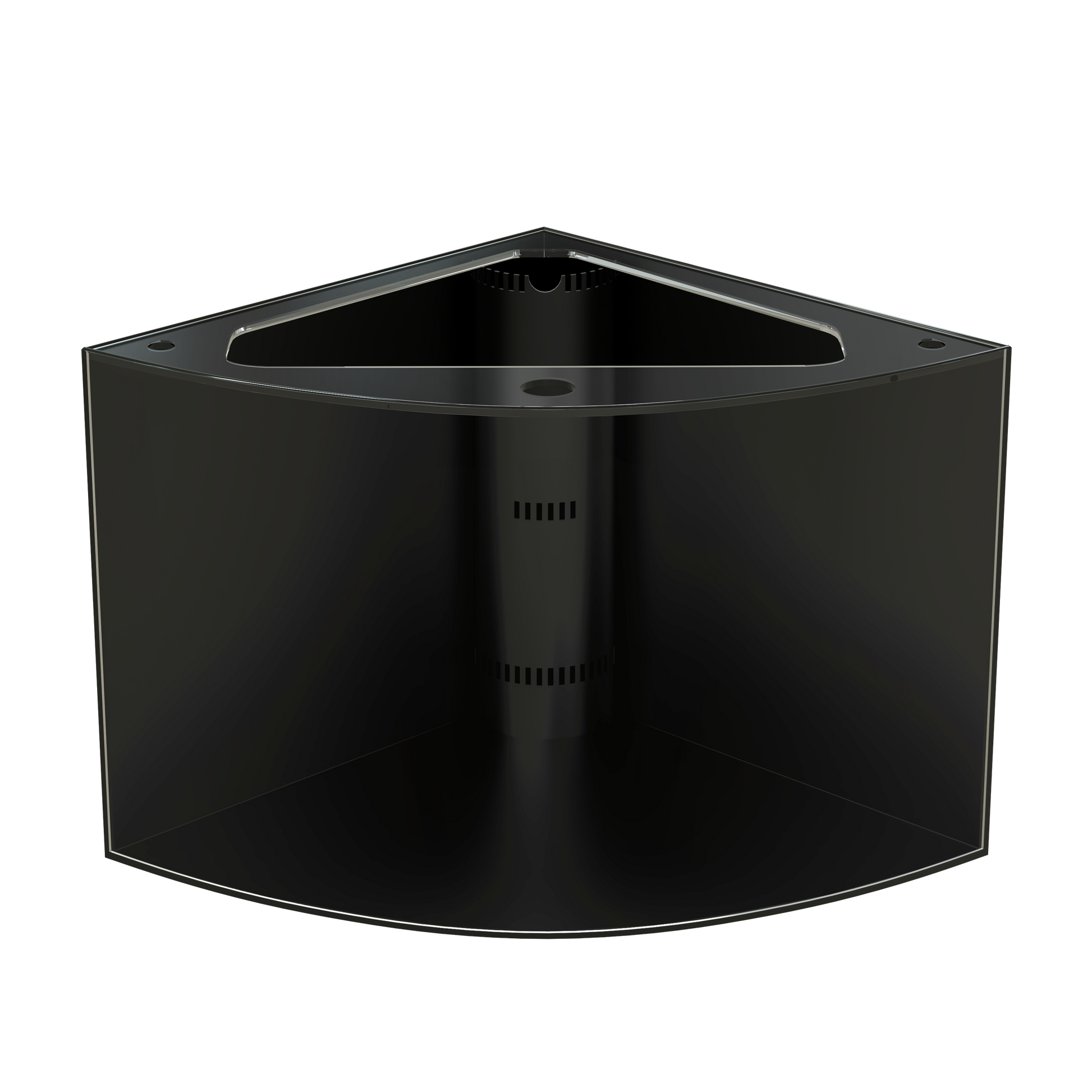 This is an Aqua Vim top of the line 440 gallon corner bow style fish tank aquarium set. Dimensions on both sides facing the wall is 60" with a tank height of 36", total height including the stand is 81". The stand on its own is 34" tall with a 15" front open canopy
